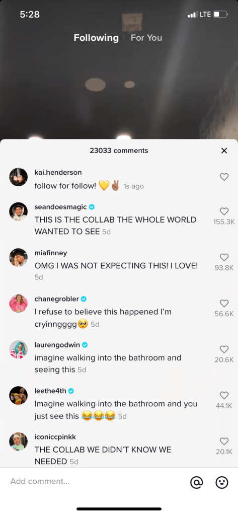 From being an active participant on the “for you” feed TikTok provides based on your likes and follows, I began to garner some followers! Then, I thought it was about time to produce my own content and make a vine of my very own. Using some inspiration taken from Alicia Keys’ most recent TikTok linked here , I used the sound and began formulating a video of my own with 2 of my housemates.